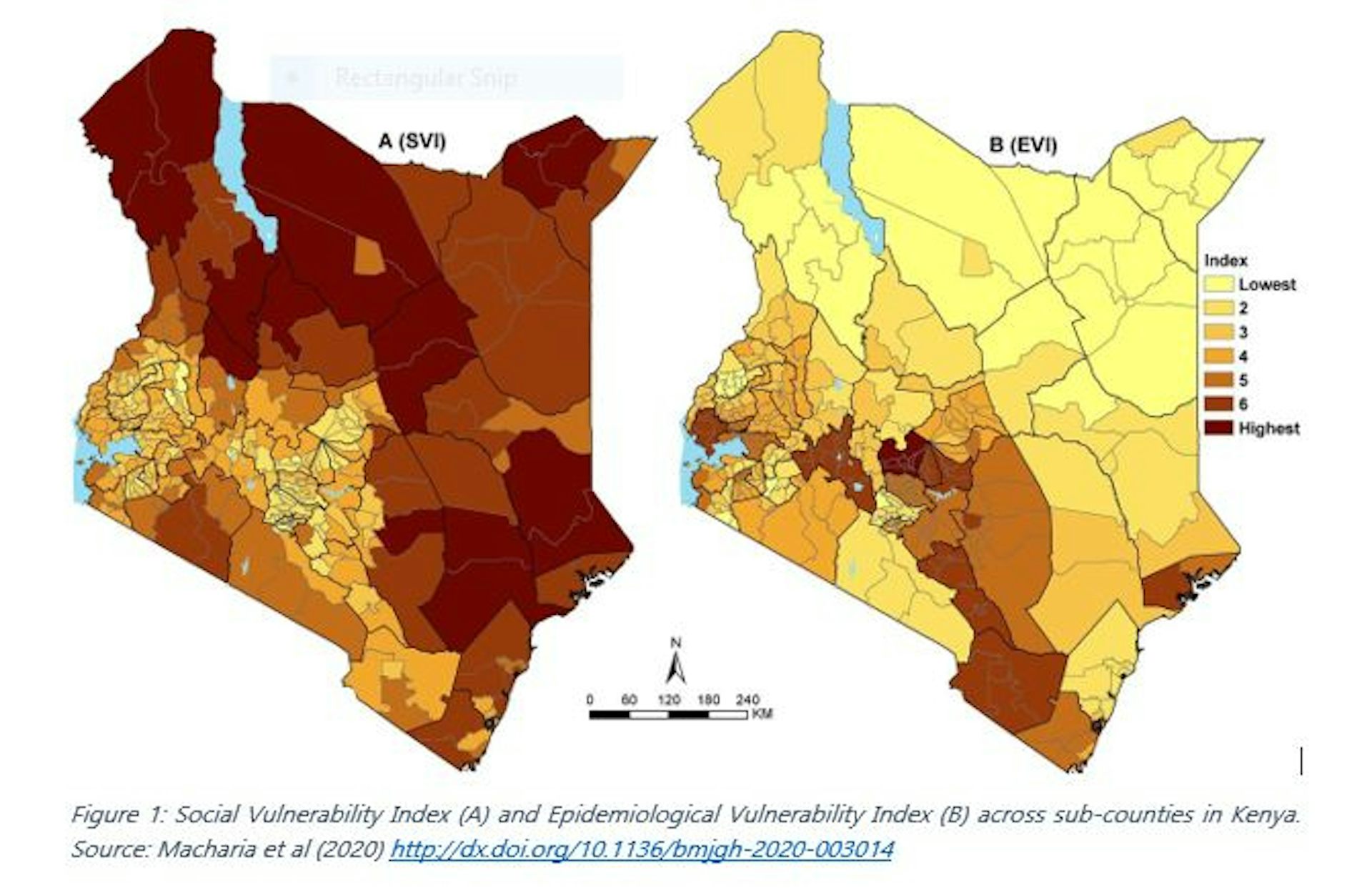 My colleagues and I created an index like this to signal where to direct support in Kenya. The ministry of health and Fraym have also created risk and vulnerability indices respectively at high spatial resolution.